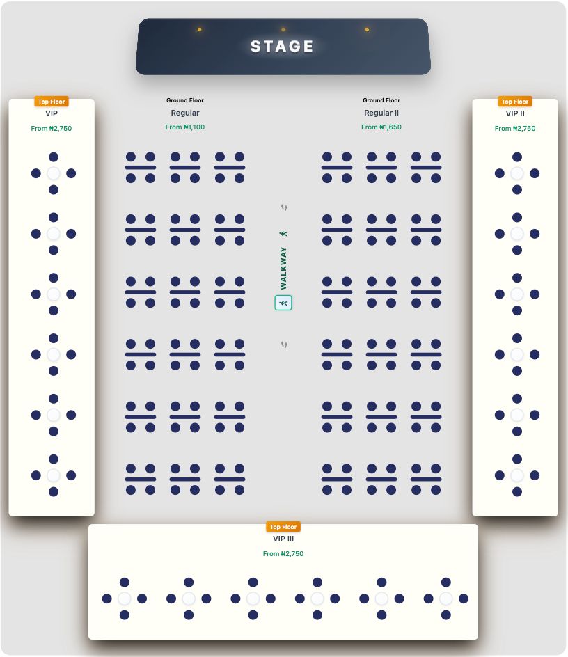 Nigeria’s first event platform with an interactive seat-picking experience, allowing organisers to customise layouts and optimise ticket pricing
